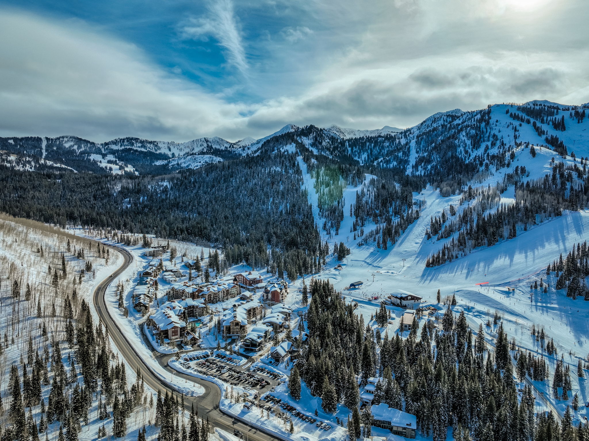 Downstairs bedroom with king bed with window looking out over Solitude.